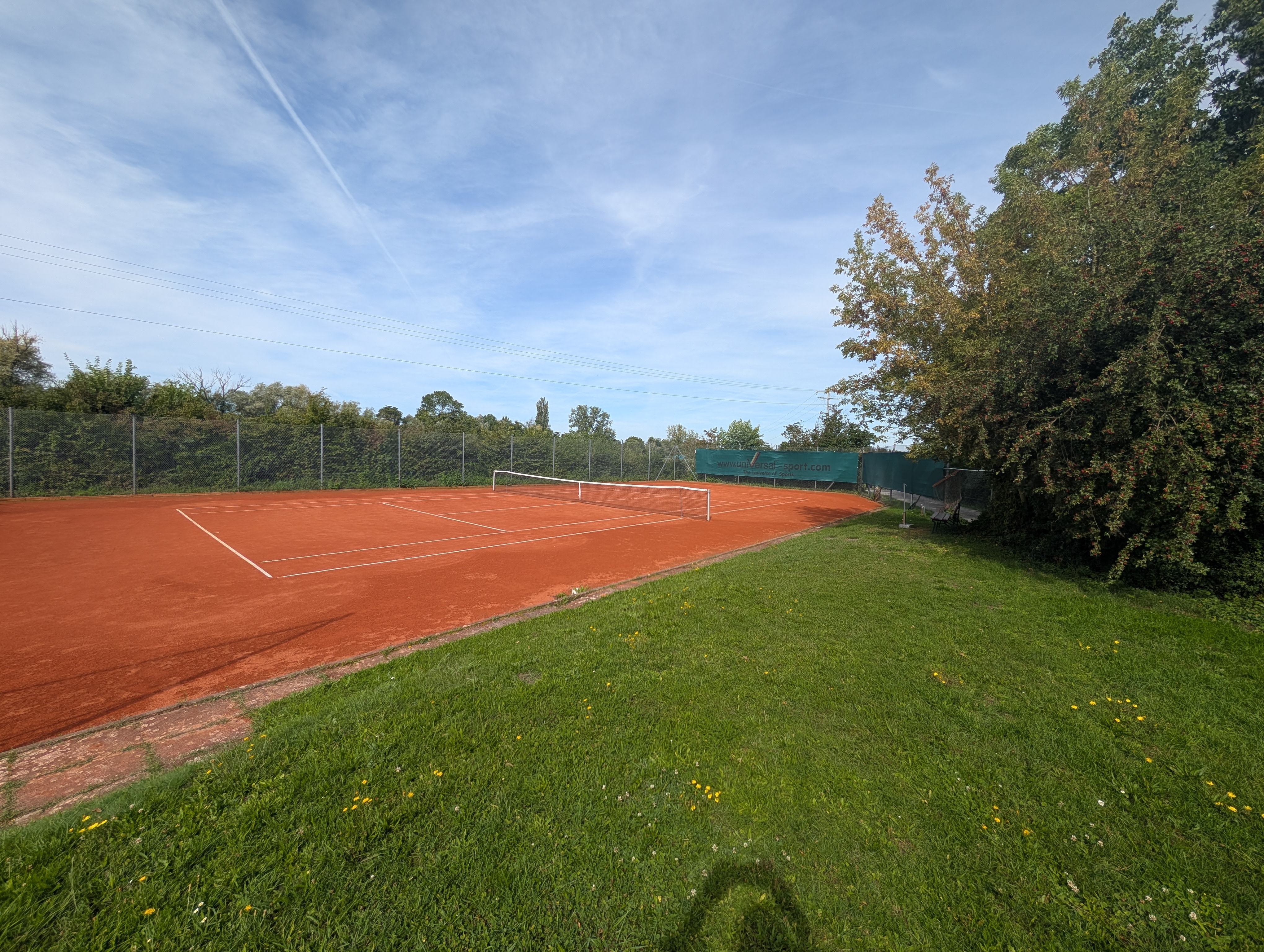 Unsere vier gepflegten Rotsandplätze stehen allen Mitgliedern zur freien Verfügung – ohne Reservierungspflicht. Auf unserer Anlage finden Sie außerdem Umkleidekabinen mit Dusche und WC, eine kleine Küche mit Sitzbereich, eine große überdachte Terrasse für Zuschauer und einen großen Grillplatz.